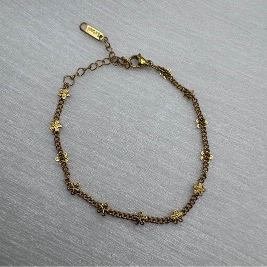 2mm | Gold | Curb Chain with Flower Charms Bracelet