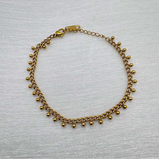 1mm | Gold | Cable Chain with Drop Beads Bracelet