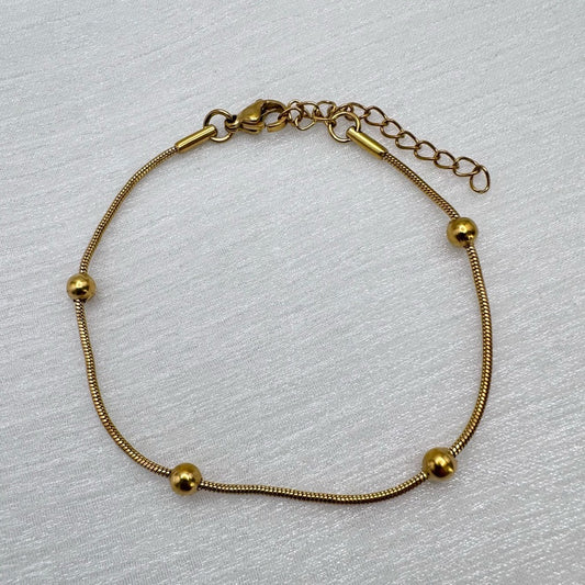 1.1mm | Gold | Snake Chain with Beads Bracelet