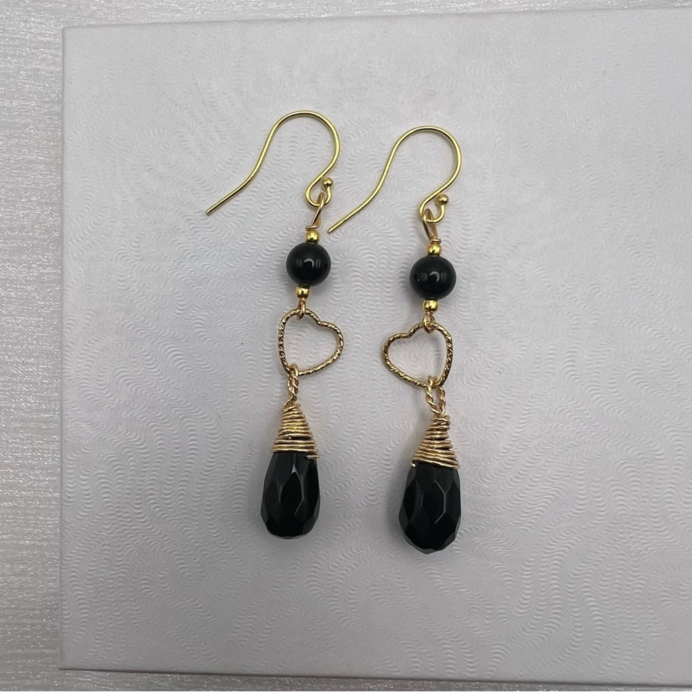 #1080 S925 Black Onyx & Heart Dangle Earrings