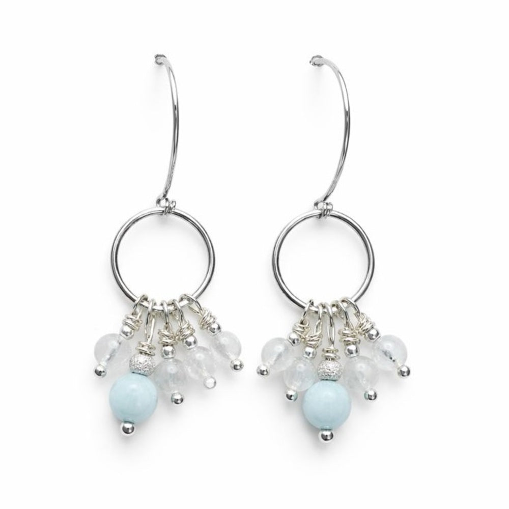 #1205 S925 Green Moonstone Round Dangle Earrings