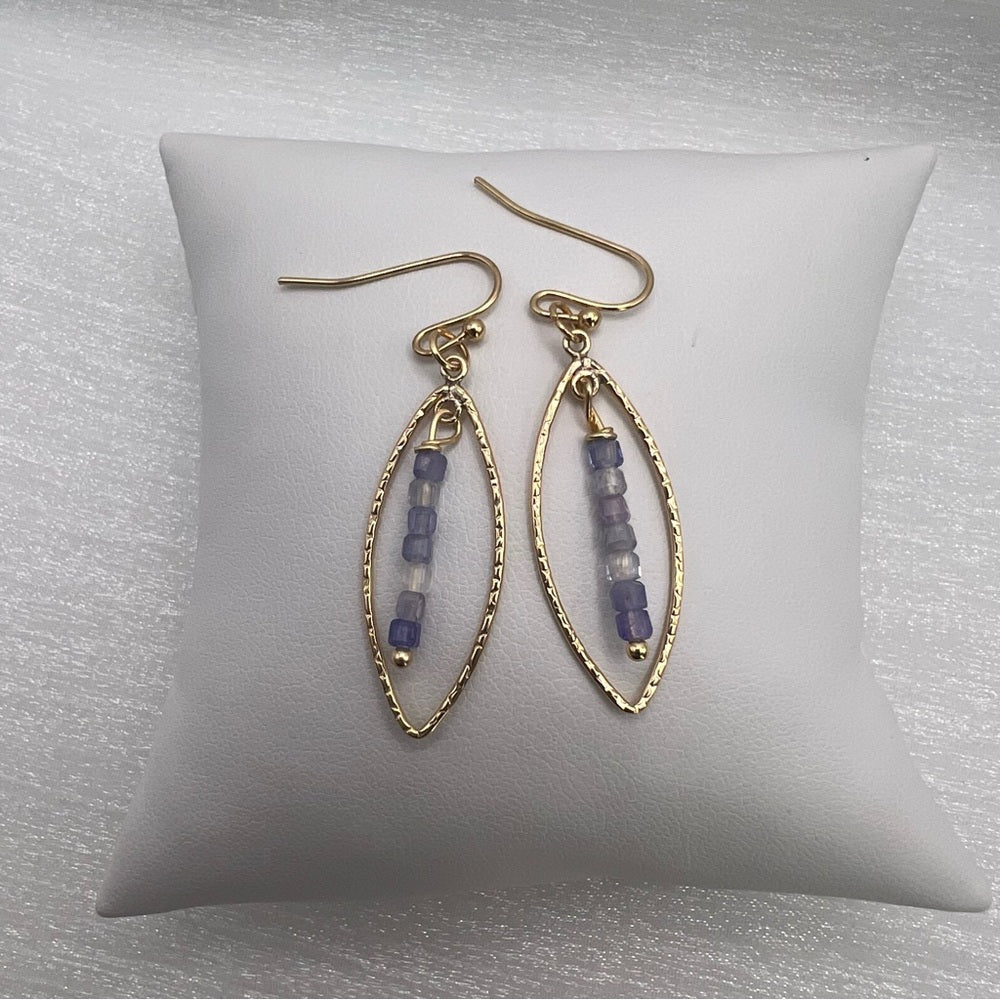 #916 Gold Tanzanite Beaded Dangle Earrings
