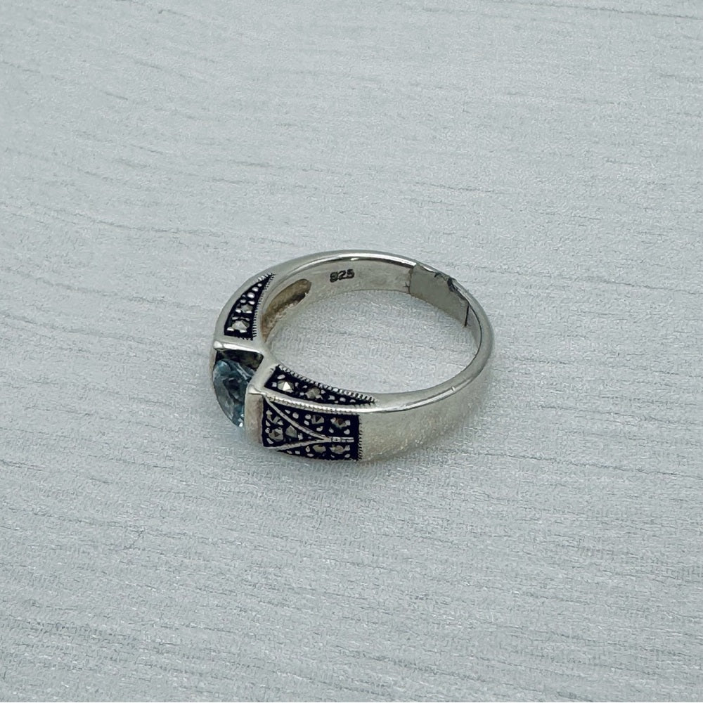 Blue Topaz & Marcasite Ring