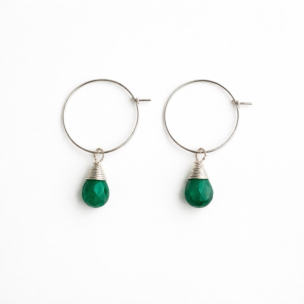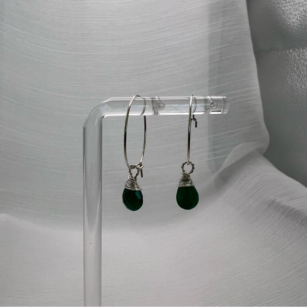 HP1911 S925 Emerald Hoop Earrings