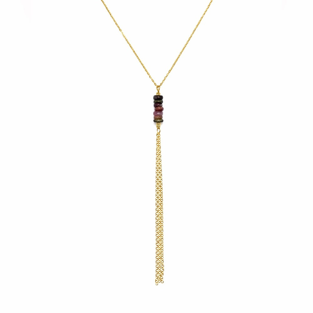 N1165 S925 Rainbow Tourmaline Lariat Necklace