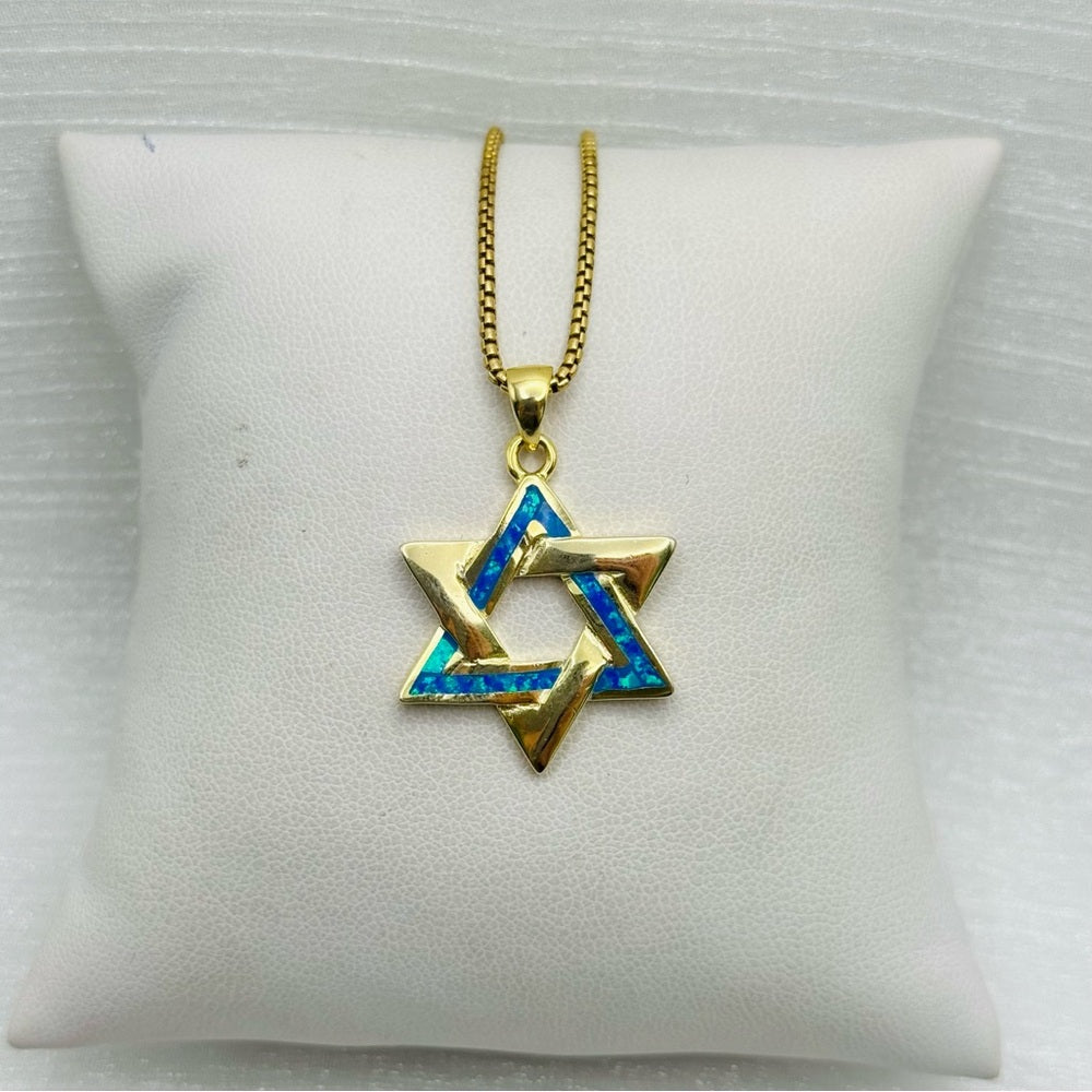 S925 Blue Opal Star of David Necklace