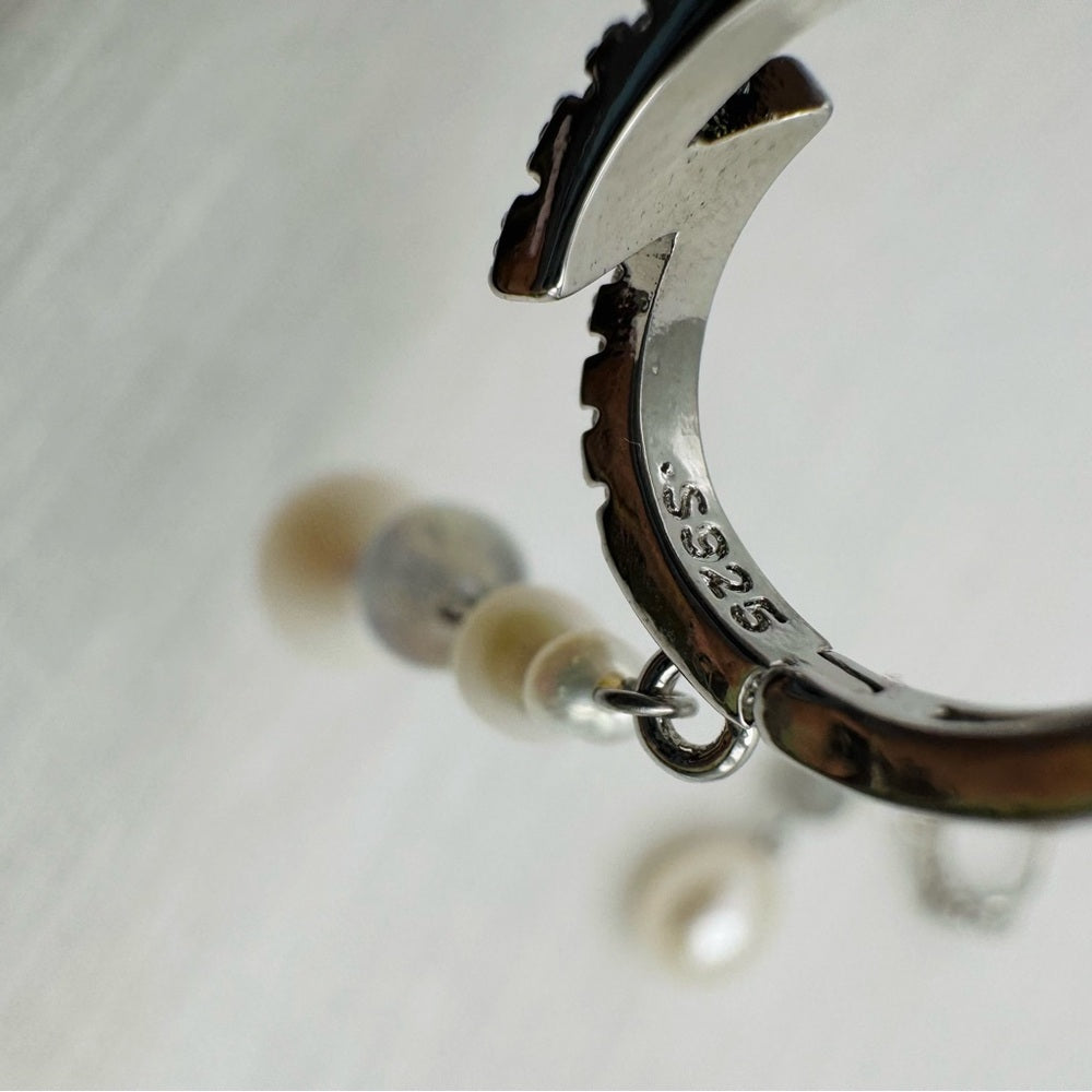 S925 Freshwater Pearl and Crystal Dangle Earrings
