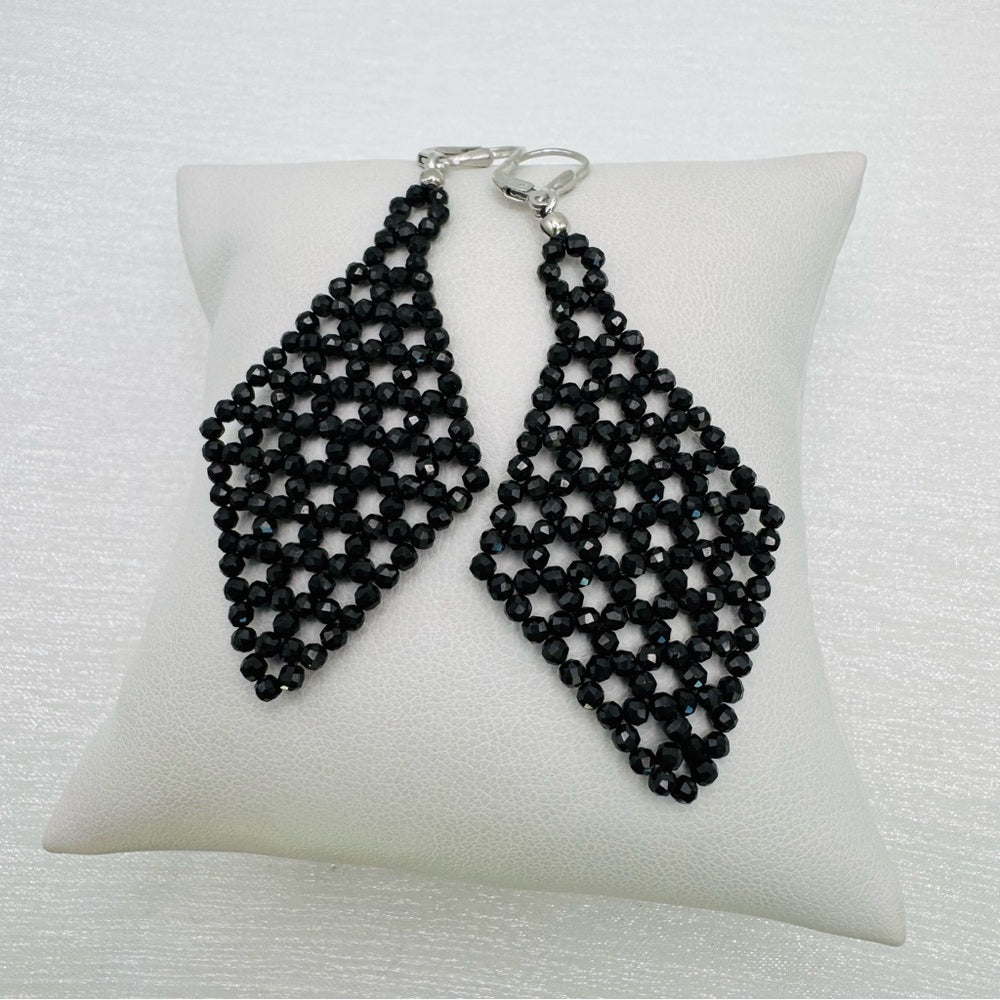 S925 Geometric Black Spinel Beaded Dangle Earrings