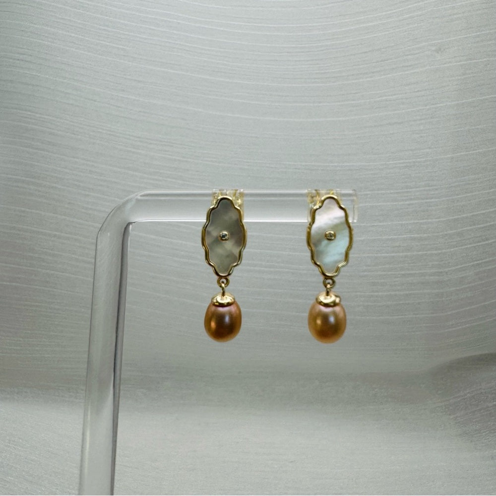 S925 Gold Plated Mother of Pearl & Freshwater Pearl Dangle Earrings