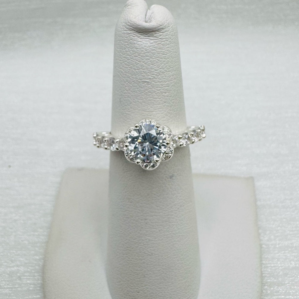 S925 Lauren Crystal Flower Half Eternity Ring