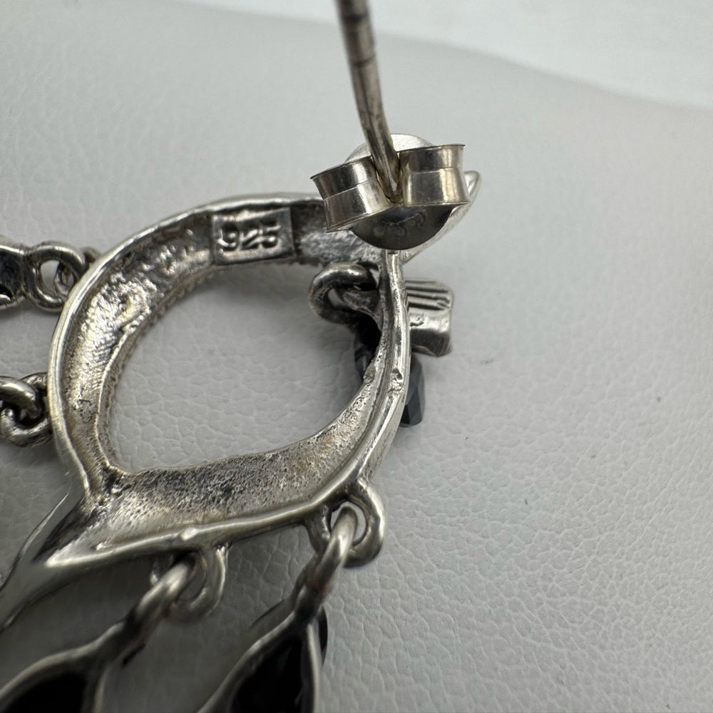 S925 Marcasite & Swarovski Black Crystal Chandelier Dangle Earrings