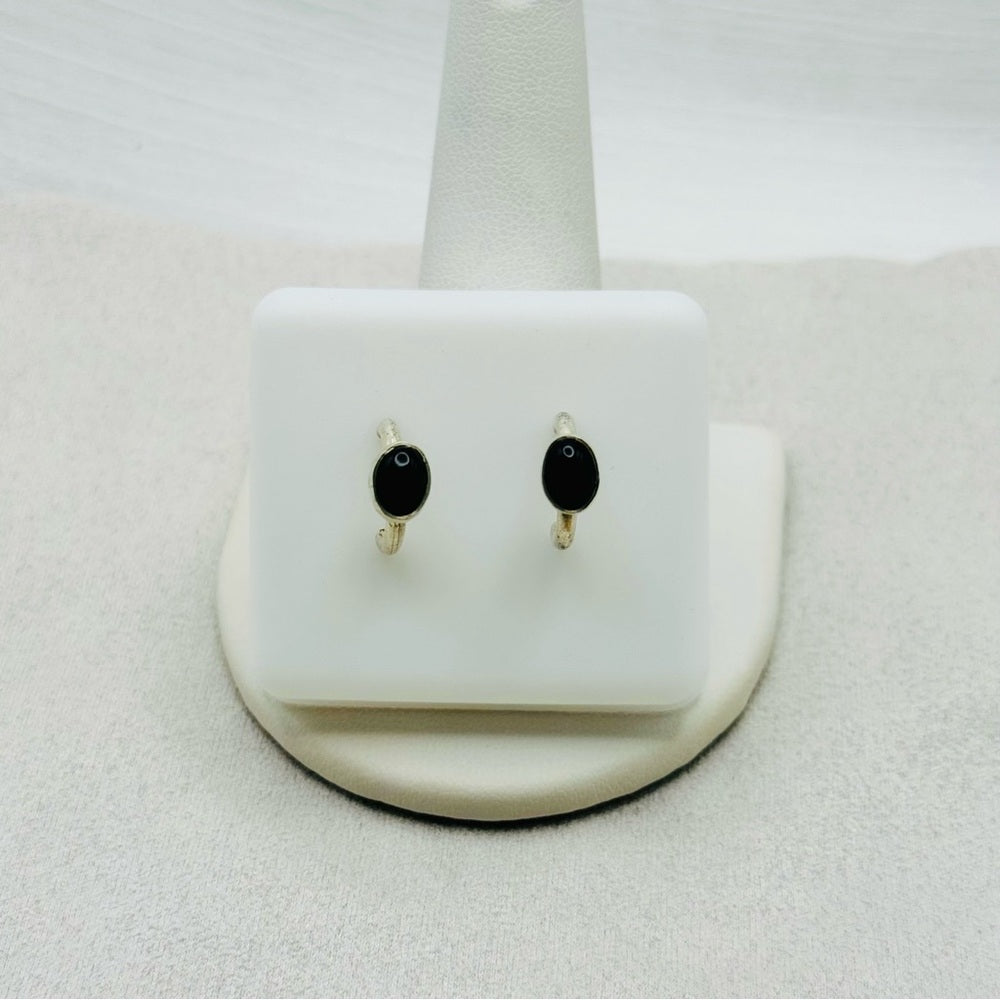 S925 Oval Black Onyx Huggie Earrings