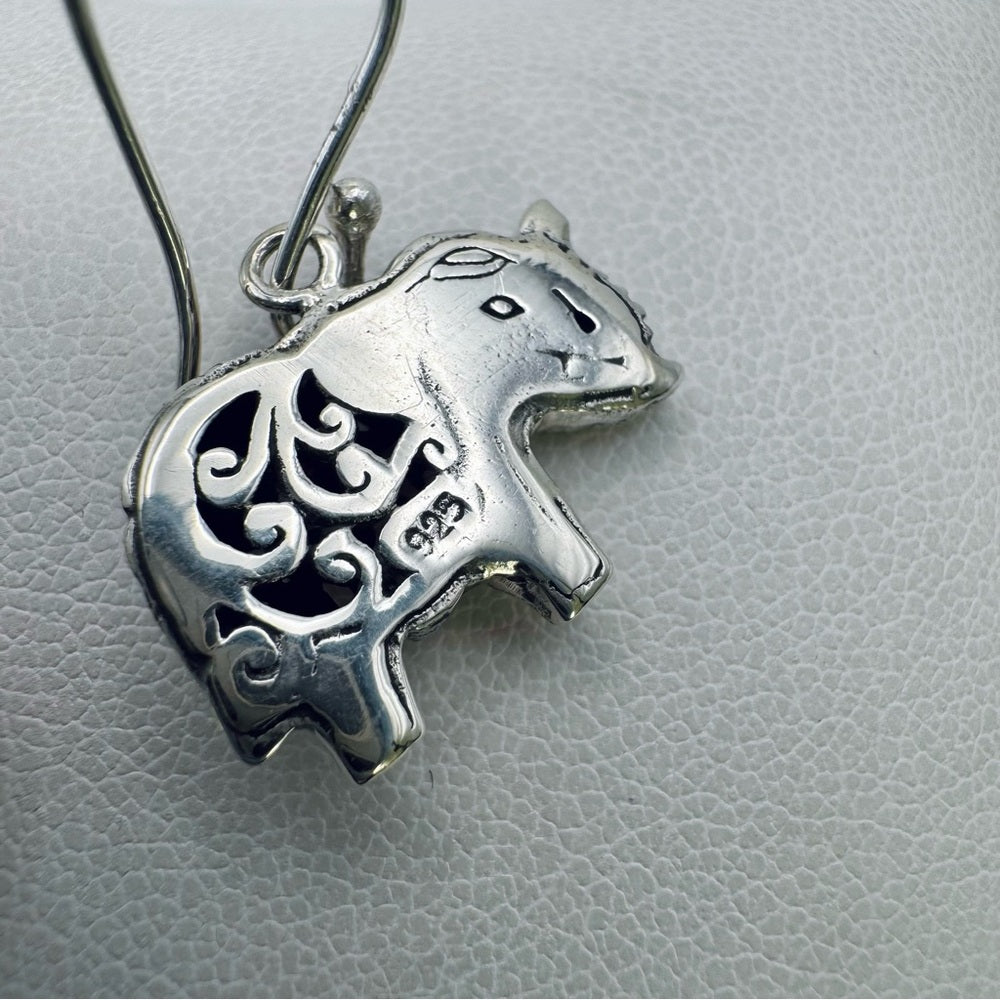S925 Pink Tourmaline Elephant Dangle Earrings